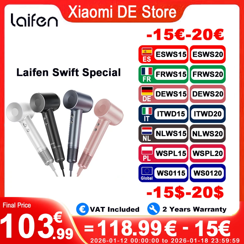 Laifen Swift-secadores de pelo especiales de alta velocidad, Motor sin escobillas de poco ruido, 110000RPM, cuidado del cabello Lon negativo, secado rápido