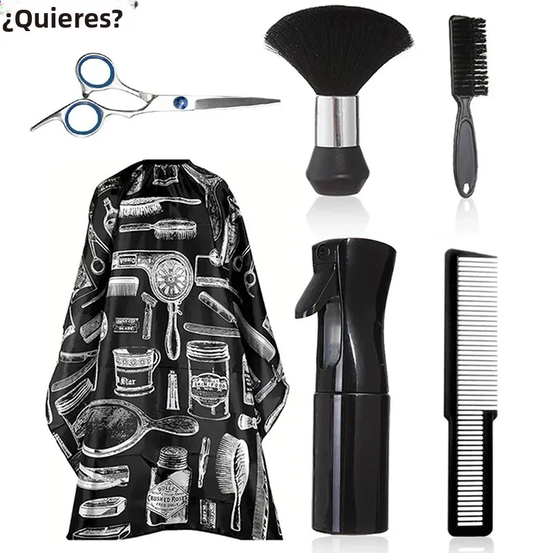 WANMEI-Juego de 6 uds de barbería profesional, chal de peluquería impermeable, babero, juego de papel, herramientas de peluquería de nailon