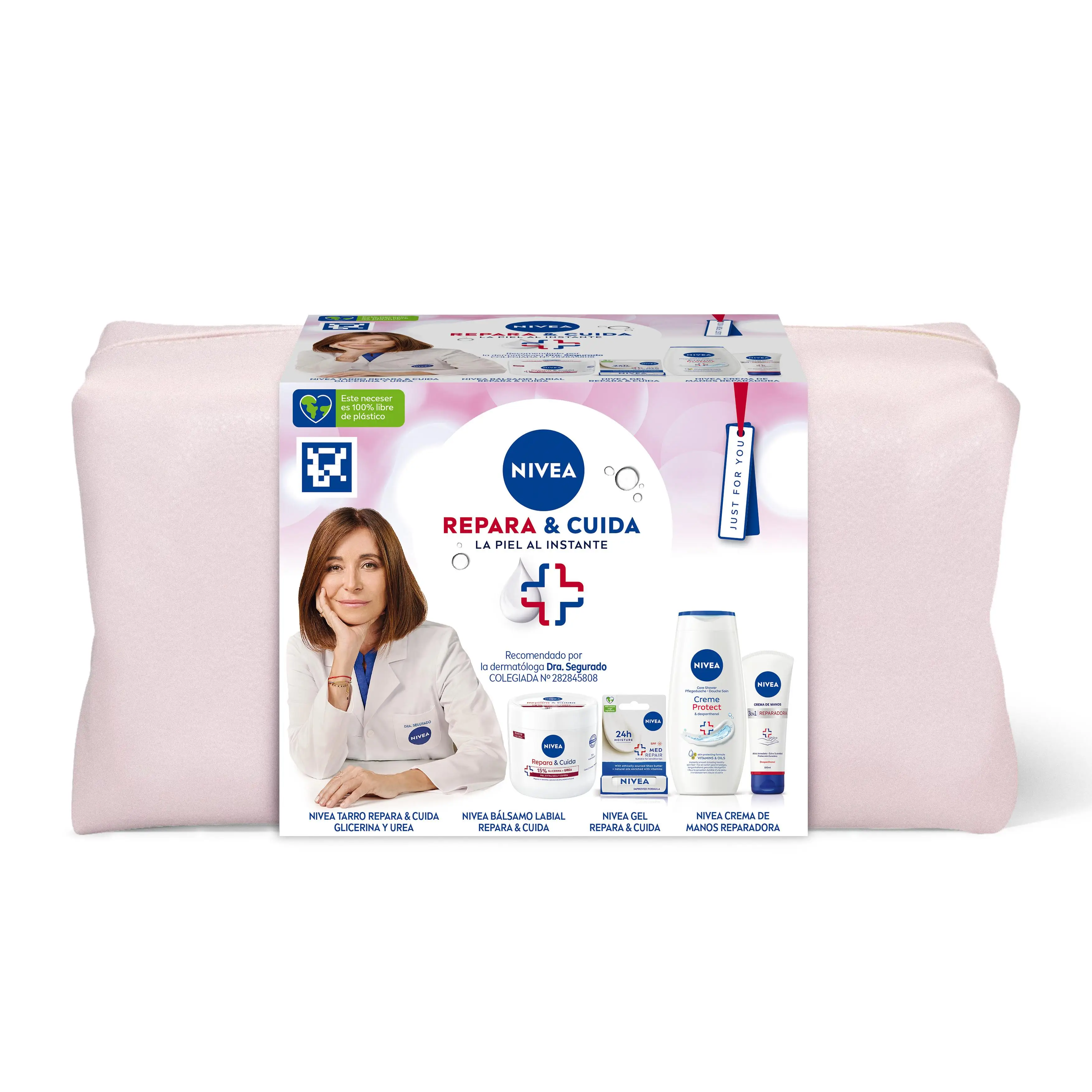 NIVEA Pack Repara y Cuida la piel al instante - Neceser regalo mujer – Contiene crema corporal, crema de manos, bálsamo labial y gel de ducha