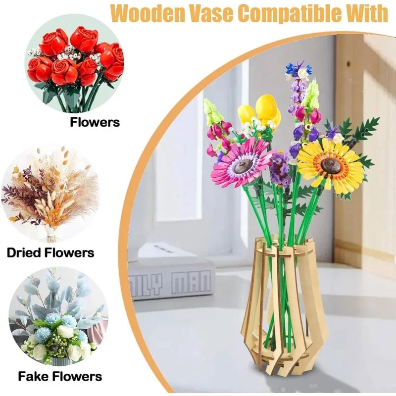 Soporte de Madera DIY para Rosas de Lego, Flores de Cerezo, Girasoles, Tulipanes, Narcisos, Loto, Decoración del Hogar