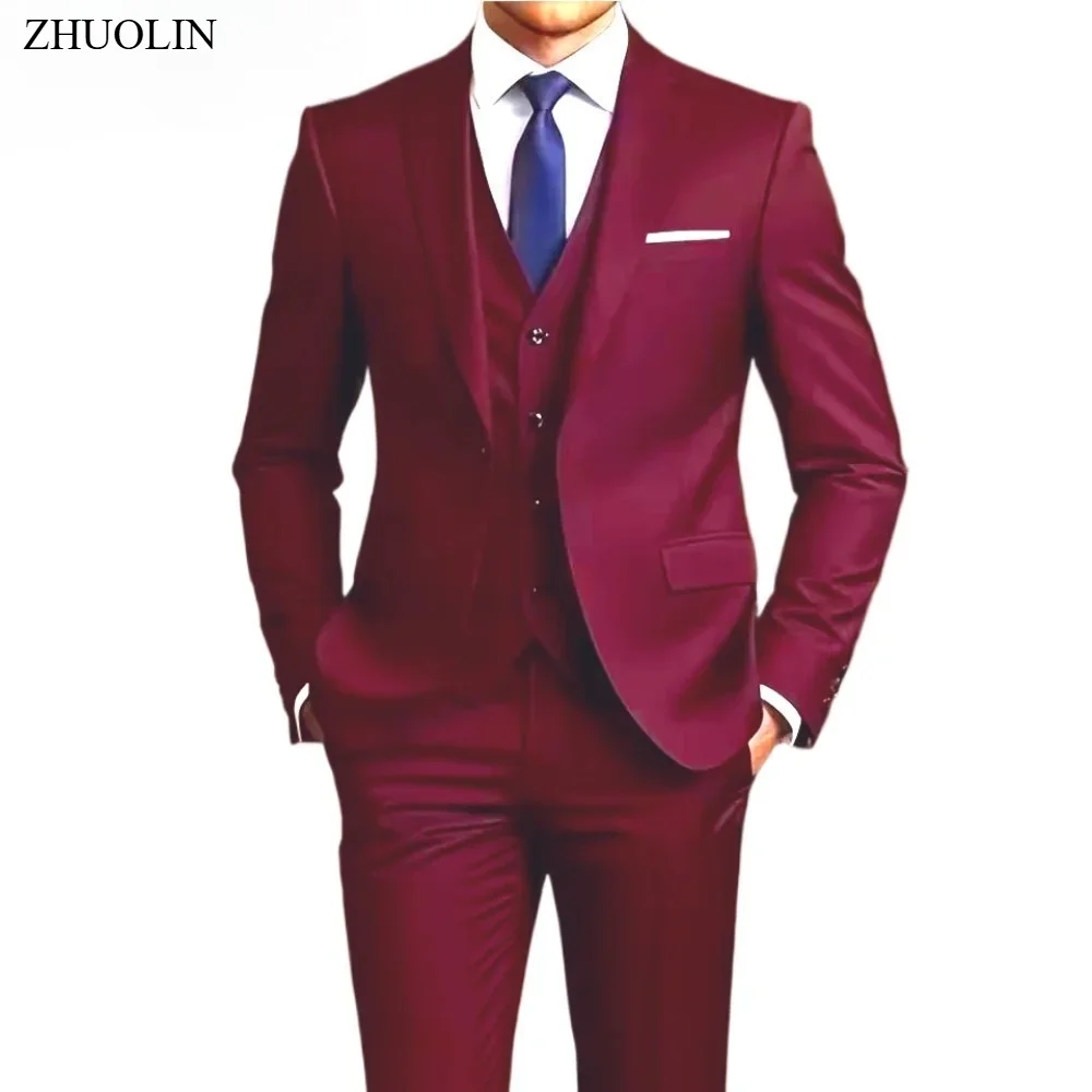 Traje Formal de Negocios para Hombre, Traje de Tres Piezas para Novio, Traje de Color para Boda