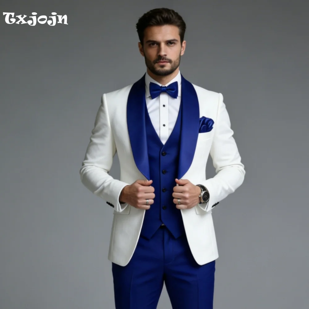 Traje de Esmoquin Azul Rey para Hombre con Solapa de Chal, 3 Piezas, Atuendo Perfecto para Novios en Bodas, Recepciones y Eventos Formales Nocturnos