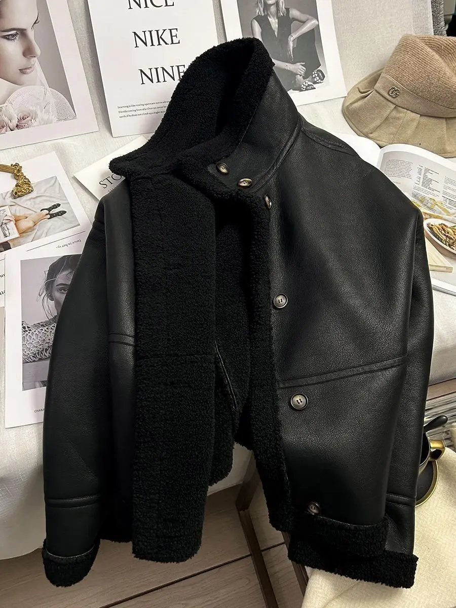 Fitaylor, chaqueta de invierno de piel sintética para mujer, abrigo informal de cuero grueso y cálido para mujer, prendas de vestir para motocicleta de calle alta
