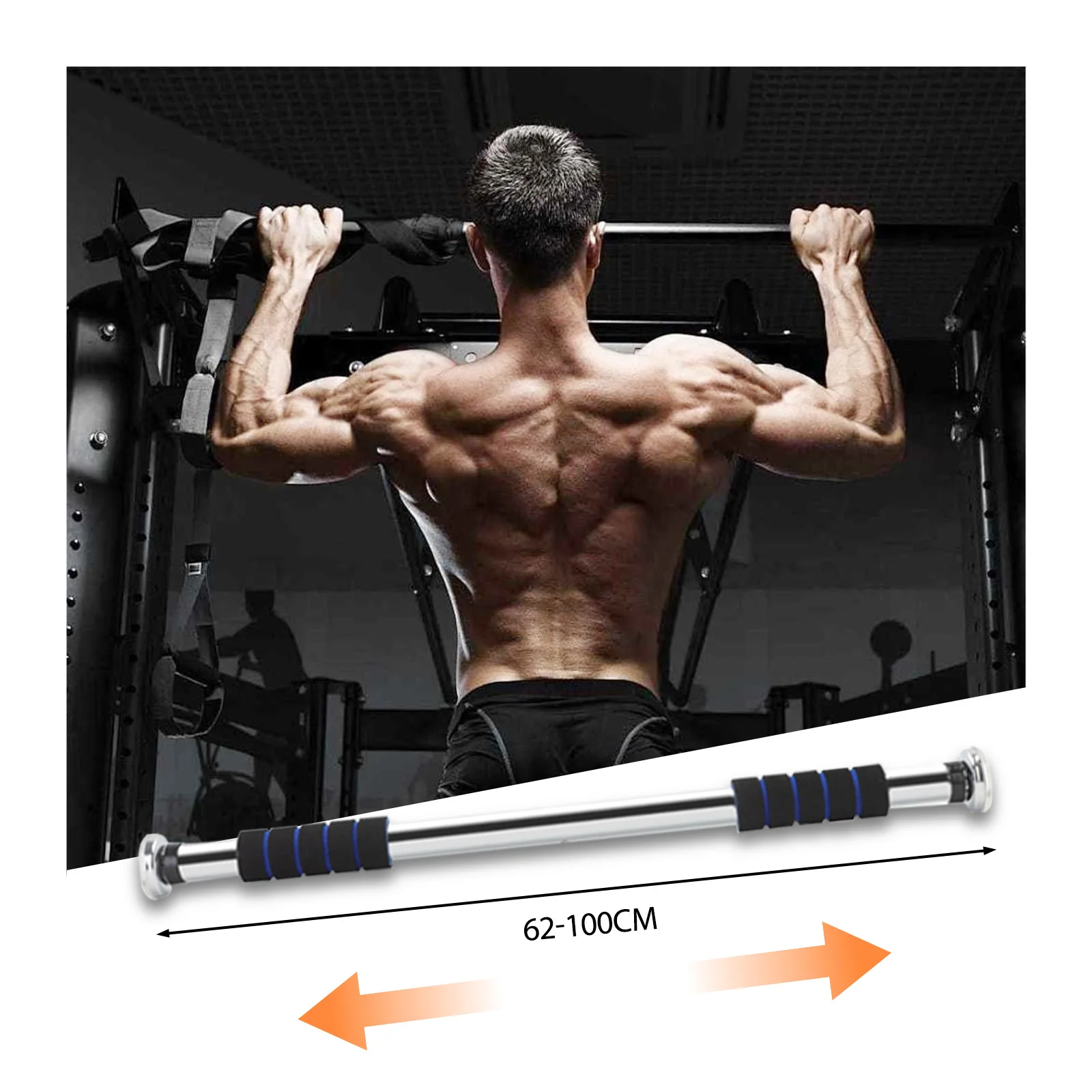 Barra de Dominadas, Barra para Puerta, Ajustable de 62 cm a 100 cm, Se Puede Montar Sin Tornillos, Antideslizante, Agarre Seguro, Asas de Espuma