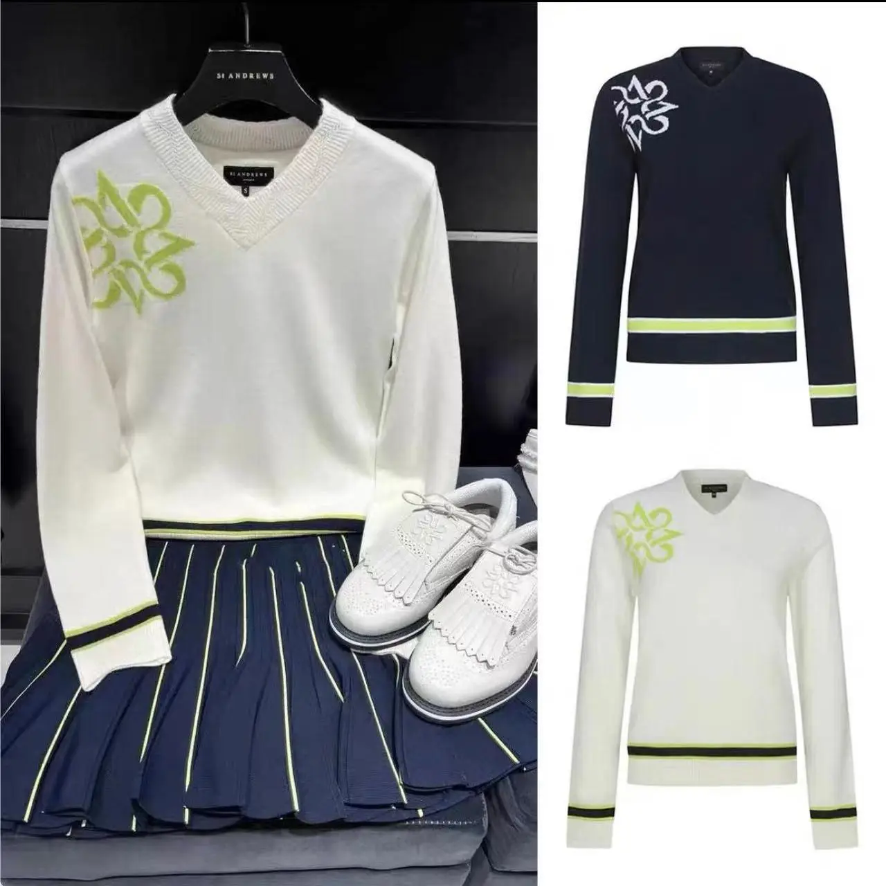 Ropa de golf para mujer Otoño/Invierno Top ajustado de manga larga con cuello en V y capa exterior estampada