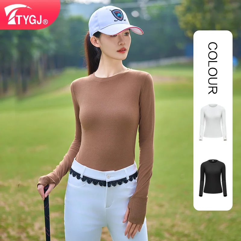 TTYGJ Golf mujer verano seda hielo fresco protector solar camisa inferior ropa de pelota de Golf camiseta de manga larga Top mujer