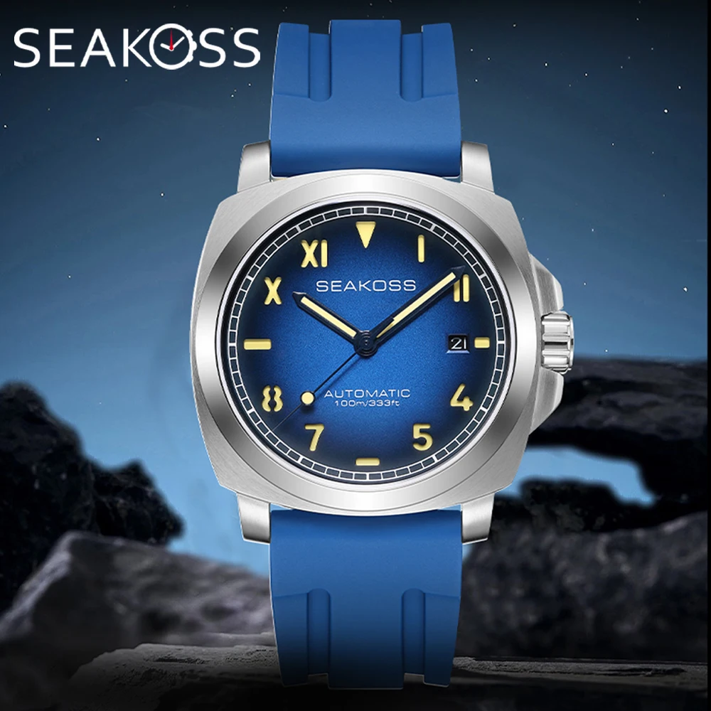 SEAKOSS 40mm 10Bar relojes mecánicos automáticos para hombres ST1612 movimiento de gaviota 316L calendario superluminoso relojes de pulsera de zafiro