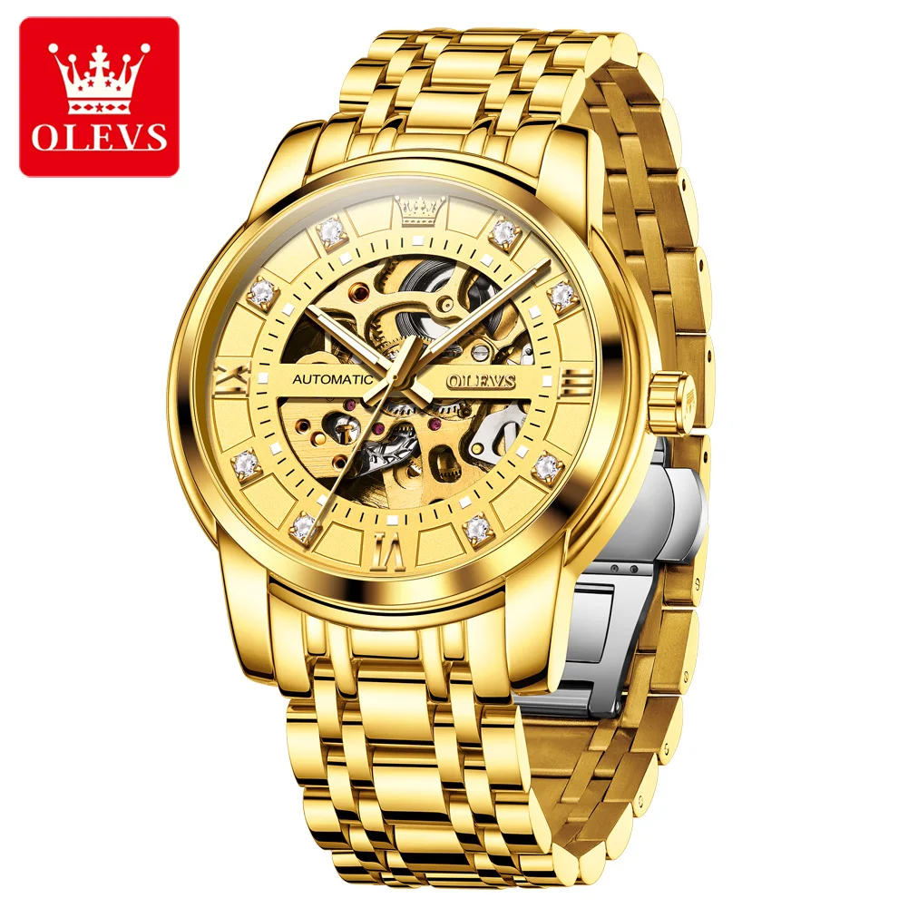 Reloj Mecánico OLEVS 9901 para Hombre, Acero Inoxidable, Resistente al Agua, Luminoso, Esfera de Diamantes, Reloj de Pulsera Automático de Lujo para Hombre