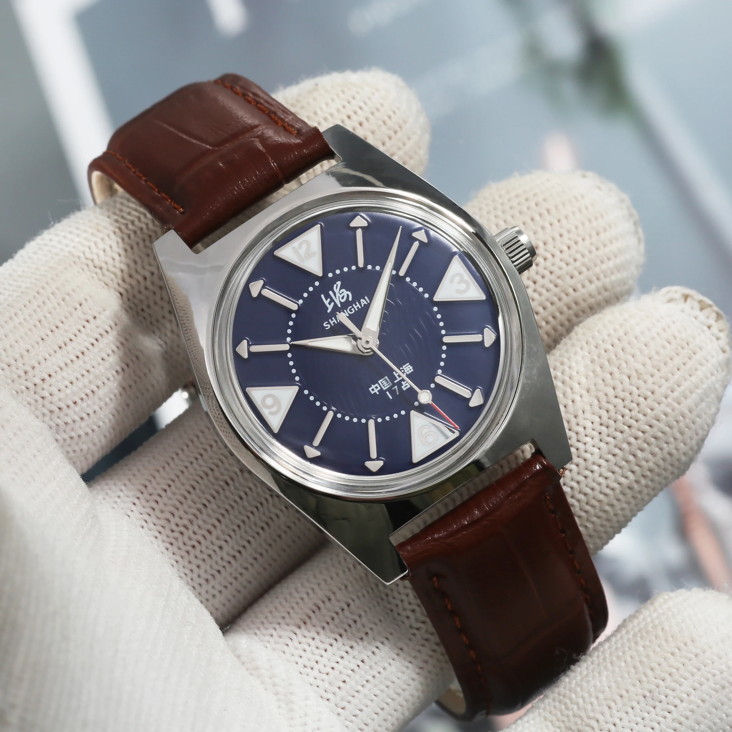 Reloj mecánico de cuerda manual para hombre Shanghai 7120: reloj de diseño retro, informal, moderno y clásico