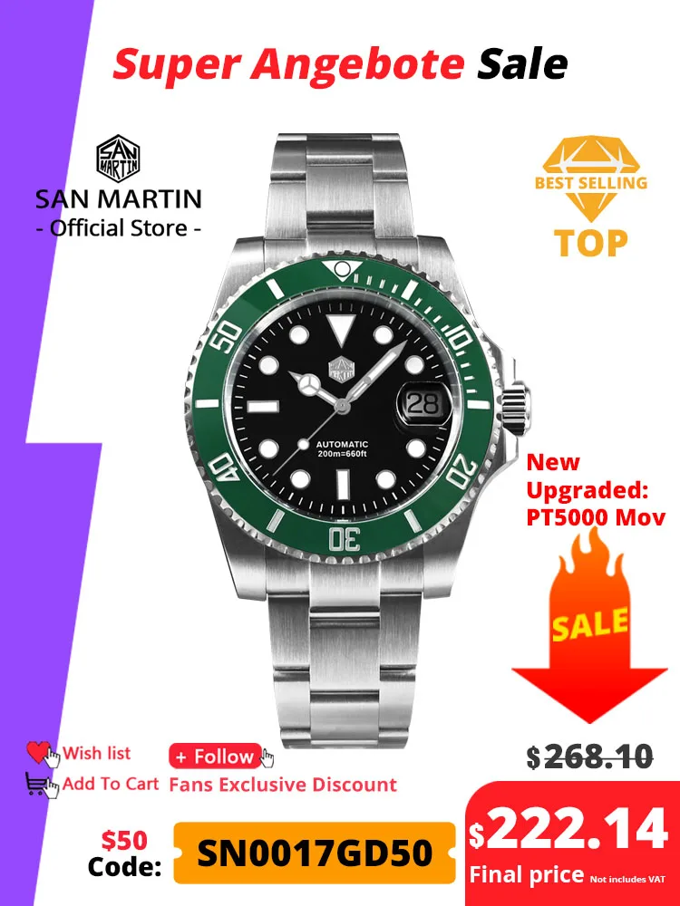 SEESTERN-Reloj de pulsera mecánico automático para hombre, cronógrafo masculino de pulsera con movimiento NH35 de zafiro Original, con fecha luminosa, de cerámica, resistente al agua hasta 200M, modelo 62MAS