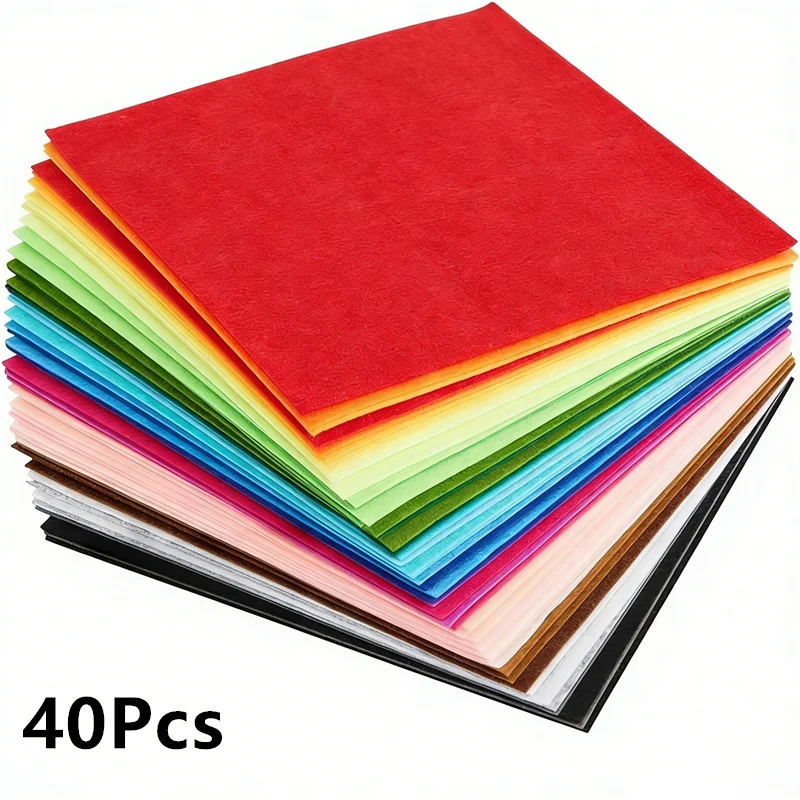 Juego de 40 piezas de fieltro duro adecuado para decoración de proyectos de costura y collage, utilizado para piezas de tela cuadradas hechas a mano en varios colores