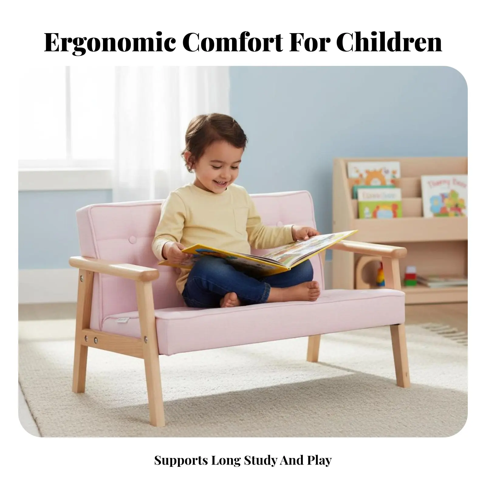 Mini Sofá sin Brazos con Patas de Madera Resistentes, Asiento Infantil con Respaldo Ergonómico y Cojín de Soporte para Niños Preescolares y de Jardín de Infancia
