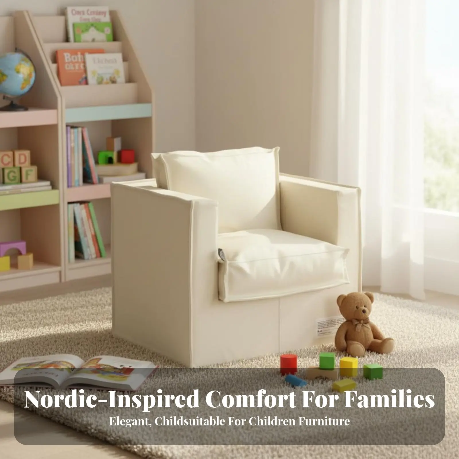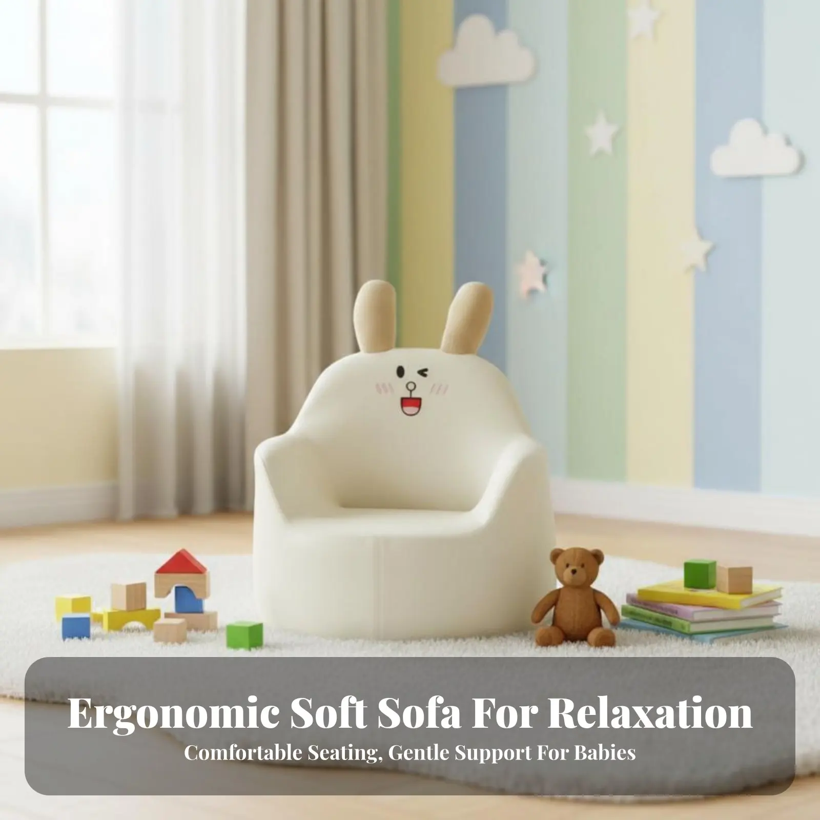 Lindo sofá perezoso para niños: puf para bebé de estilo nórdico, silla esquinera de lectura individual para dormitorio y sala de estar