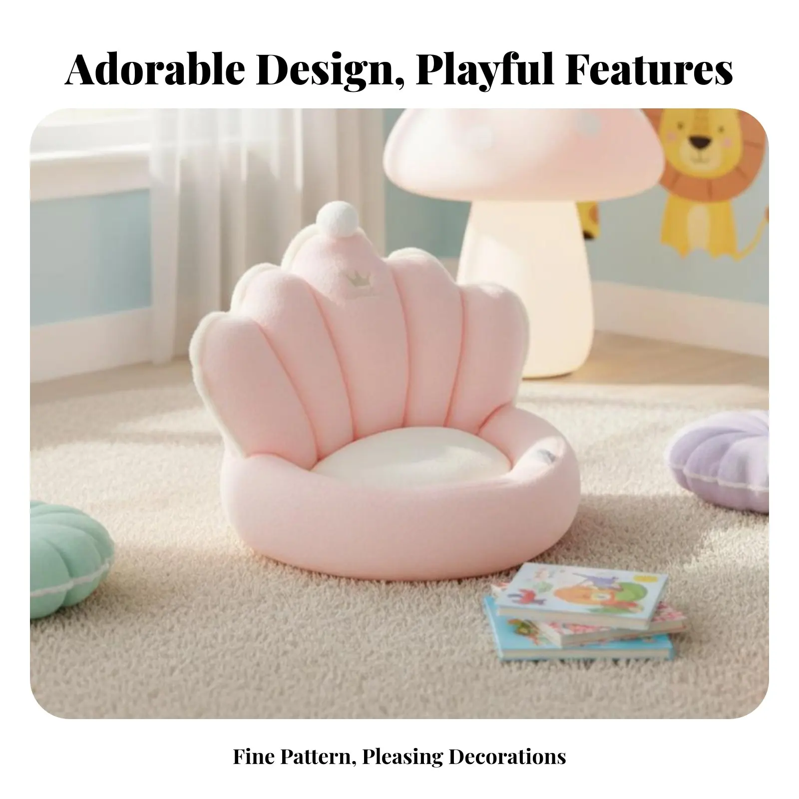 Silla de salón para niños Princess Cloud, sofá de felpa con forma de rincón de lectura para niñas, asientos de suelo de terciopelo rosa para decoración de dormitorio y sala de juegos