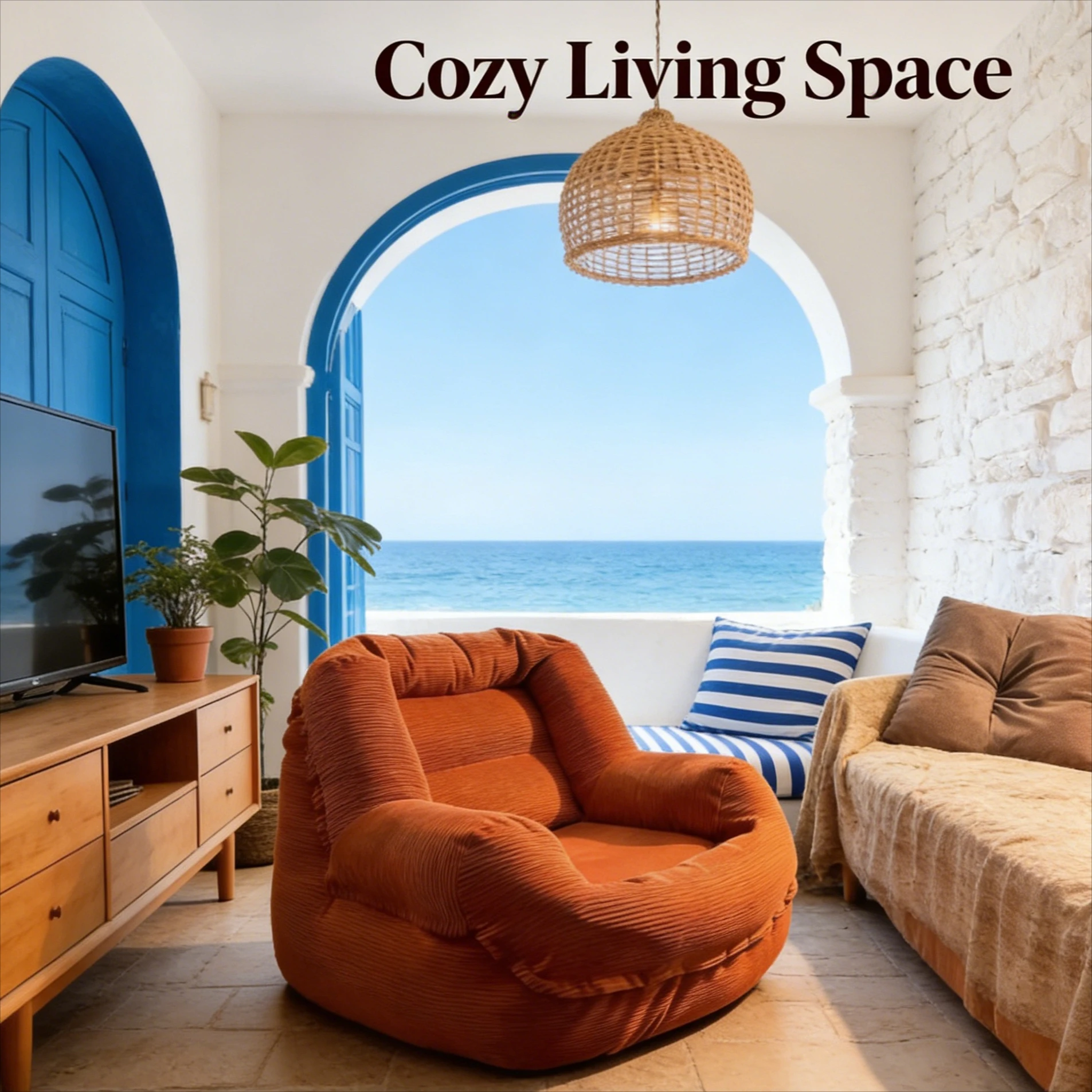 Sofá de salón individual moderno minimalista, cómoda silla tipo puf de algodón suave para muebles de sala de estar o dormitorio