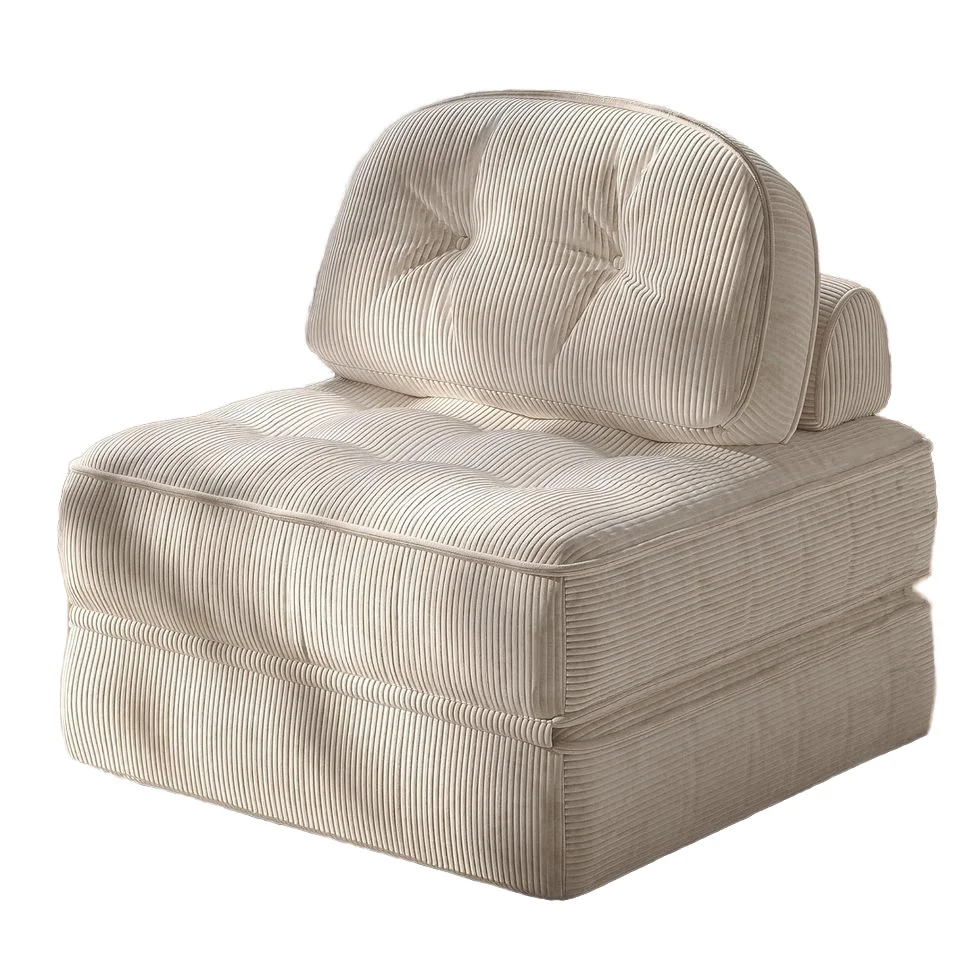 Sofá cama acanalado blanco de terciopelo Convertible individual moderno, salón para el hogar, sala de estar, cómodo sofá cuadrado plegable