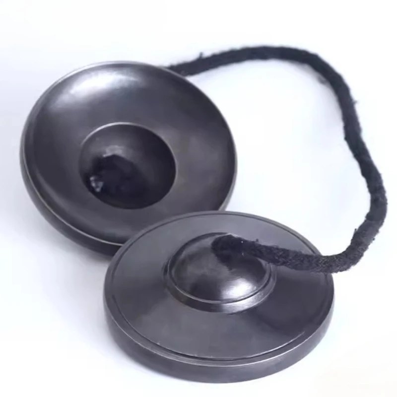 Campanas de Tinkle hechas a mano de Nepal, platillos de meditación de latón negro, campana de Tingsha grande con bolsa, instrumento de Orff de platillo tibetano portátil
