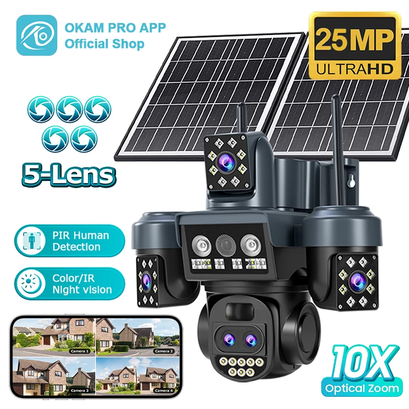 Cámara Solar 4G Sim de 15MP, 3 lentes, tres pantallas, vigilancia en exterior, WiFi, Zoom Digital 10X, cámaras de seguridad de seguimiento automático V380 Pro