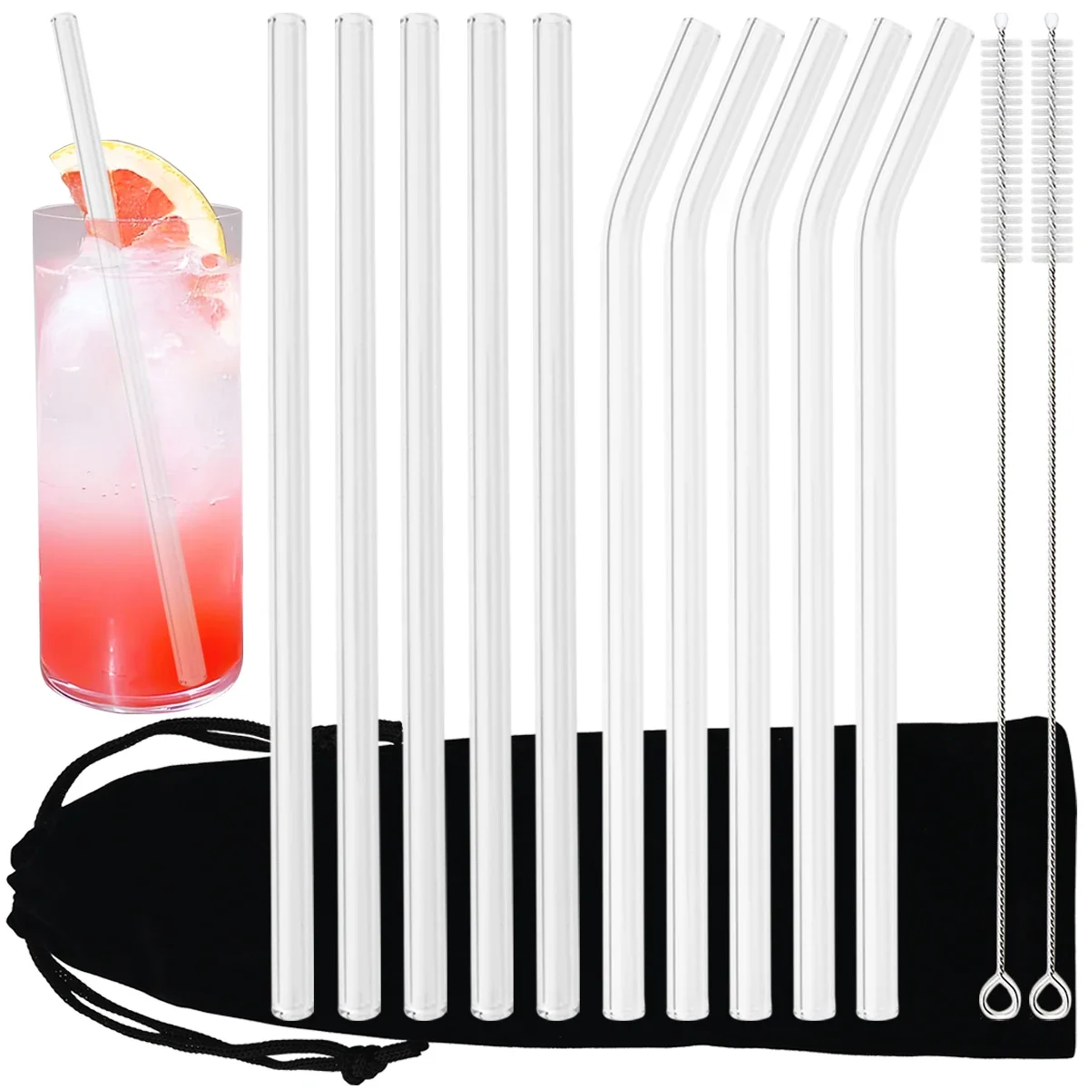 4pcs Straight 160x6mm Drinking Straws Stainless Steel Straw Set with Brush Reusable Straw for Cocktails Milkshake Juice Coffee