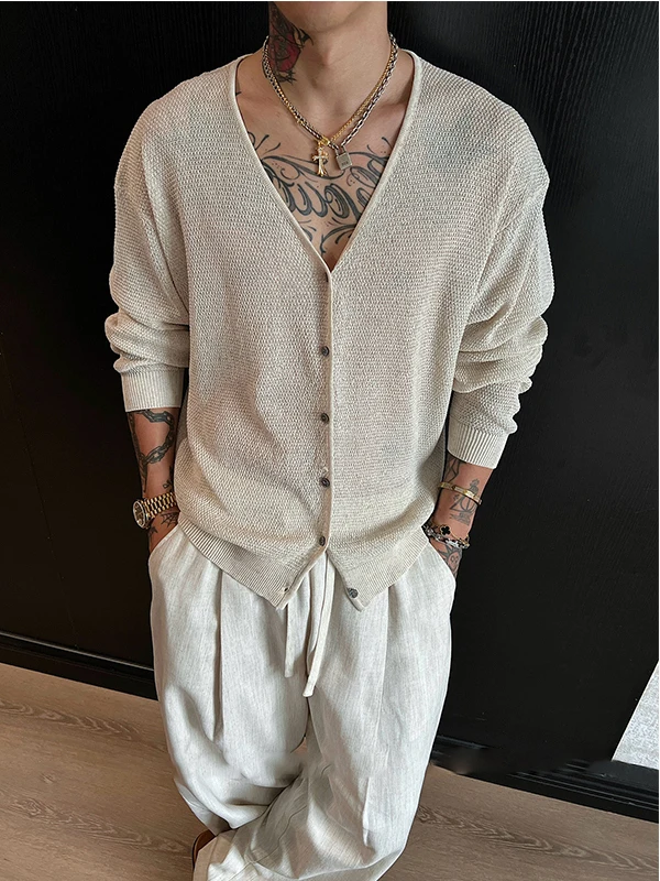 Cárdigan de punto con cuello en V para hombre, corte ajustado, transpirable, ligero, con diseño hueco, suéter de verano, prot...