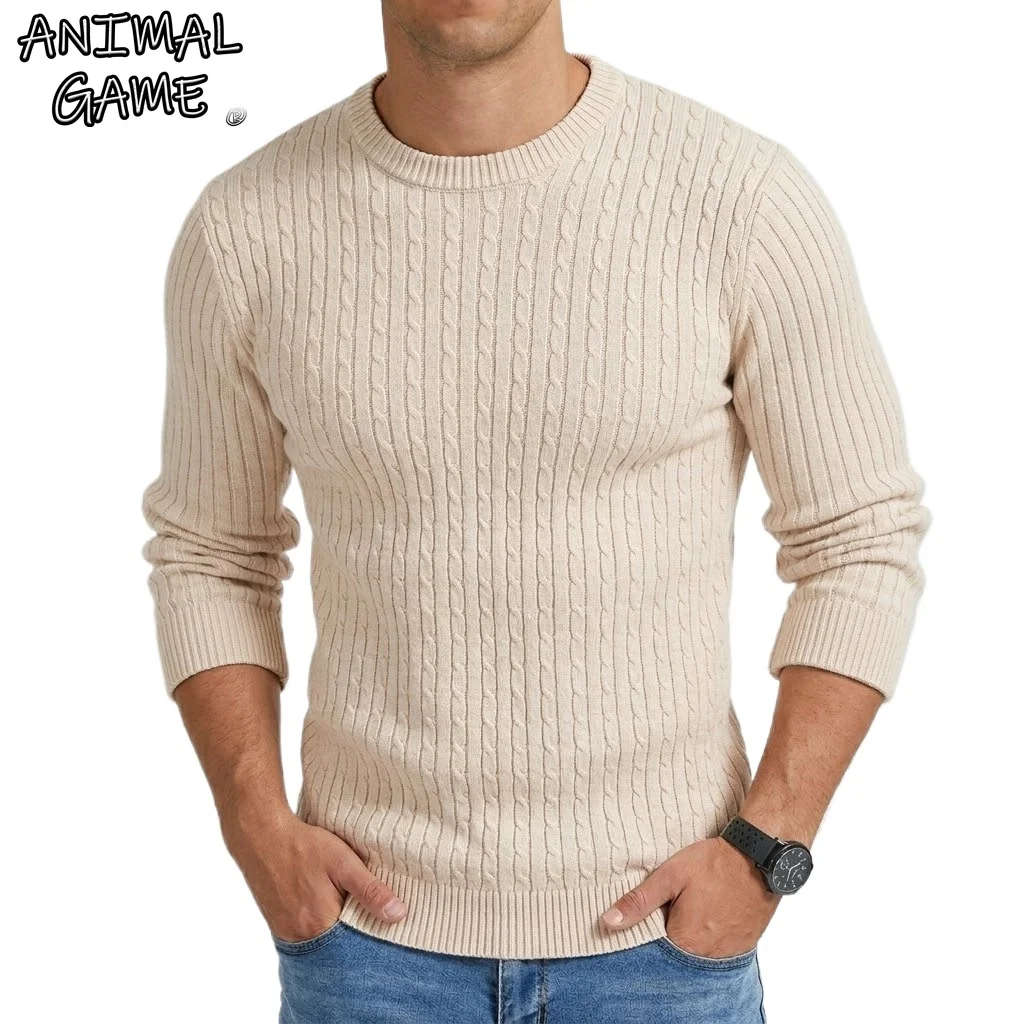 Nuevo Suéter de Manga Larga con Cuello Redondo para Hombre, Jersey de Punto de Lujo, Camiseta Informal de Punto Trenzado, Suéter de Trabajo, Abrigo para Hombre de Primavera y Otoño