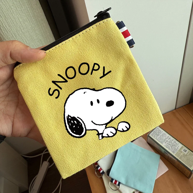 Snoopys-cartera pequeña con patrón de cremallera para mujer, monedero portátil de lona fresca, figuras de Anime, bolsa de almacenamiento de dinero para auriculares