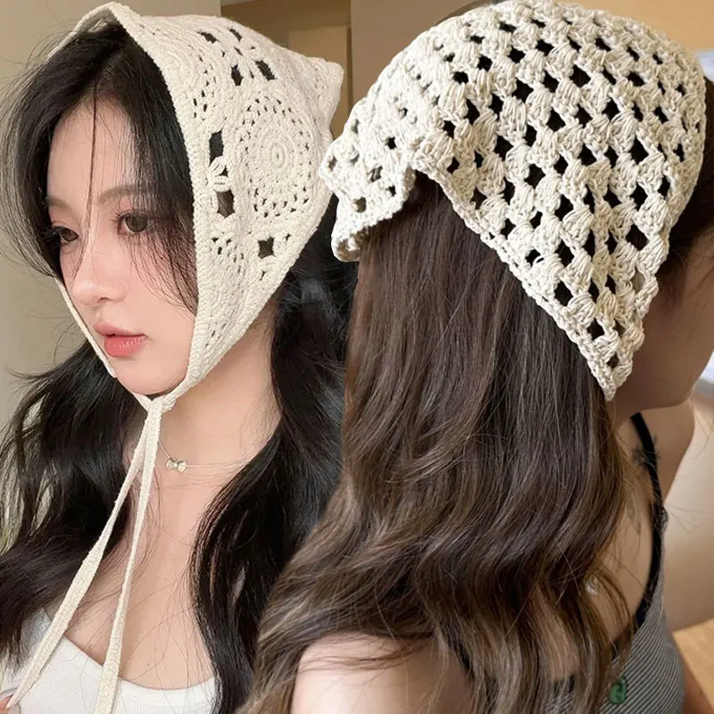 Pañuelo de encaje Retro, diadema, pañuelo para el pelo con estampado Floral tejido blanco, pañuelo triangular bohemio, sombrero, pañuelo dulce, accesorios para el cabello