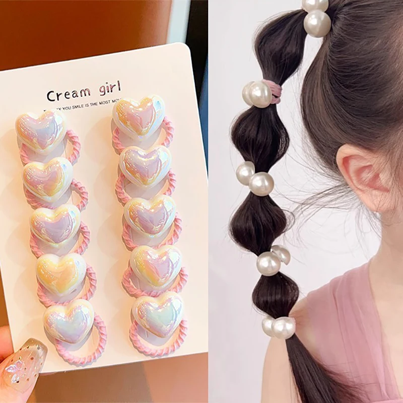 10 unids/set lindo bebé niña bandas de amor para el cabello dibujos animados amor corazón estrella lazos para el cabello niño banda de goma elástica niños cuerdas para el cabello sombreros