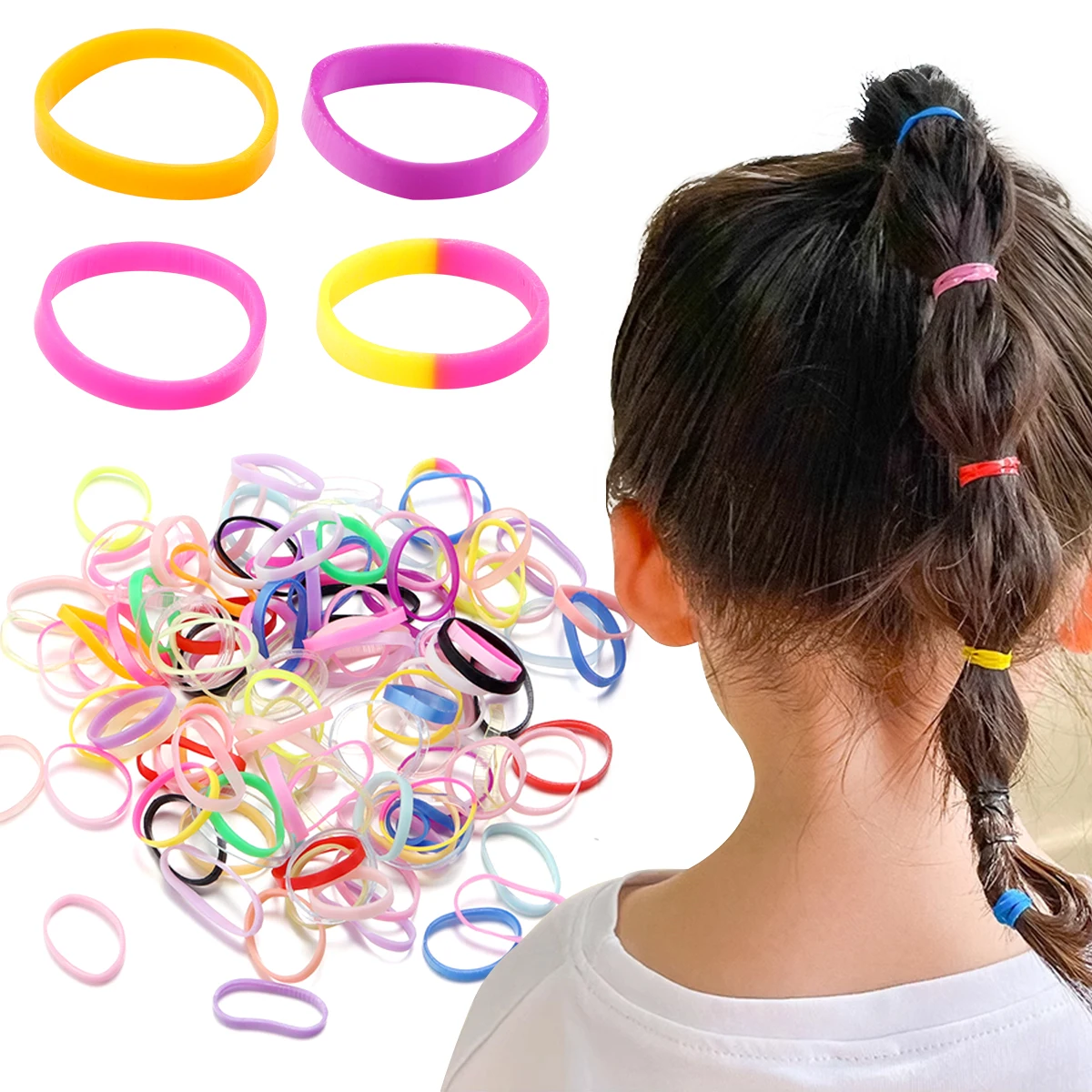 100 unids/set lazos para el cabello bandas de goma elásticas para mujeres y hombres bandas de goma para el cabello fino coleteros accesorios para el cabello para mujeres