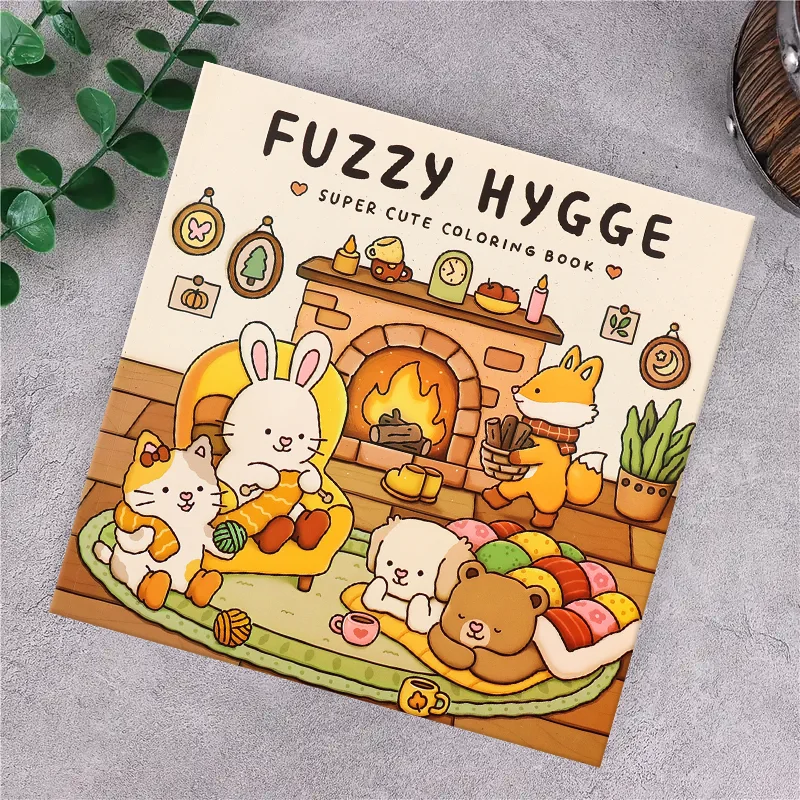 Fuzzy Hygge: acogedor libro para colorear para adultos y adolescentes con lindos personajes de animales para aliviar el estrés: lindos diseños de animales
