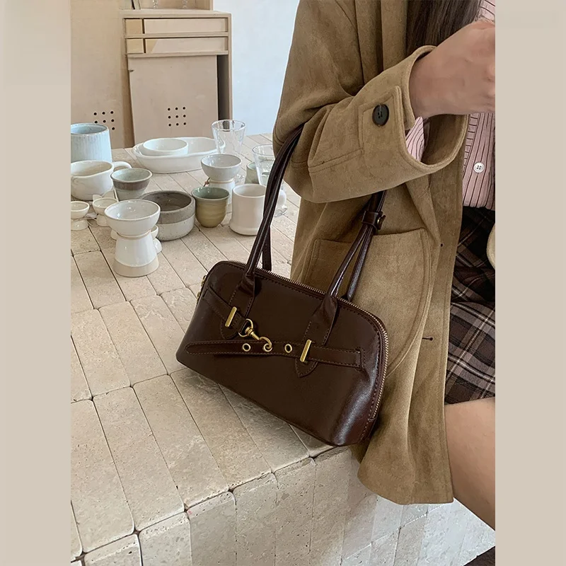 Bolso de Mano Retro ZAR FENDEN para Mujer, Bolso Bowling de an Capacidad, Bolso de Hombro para Otoño, Doble Correa, Cierre ...