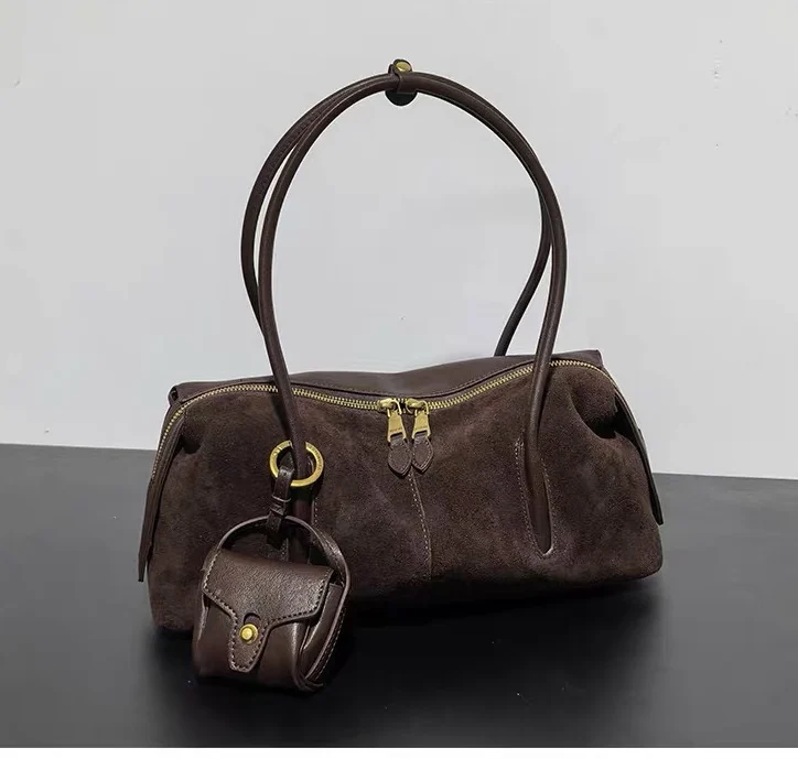 Bolso de Hombro de Terciopelo Sintético para Mujer, Estilo Moderno y Versátil, Color Marrón, Nuevo Estilo 2025