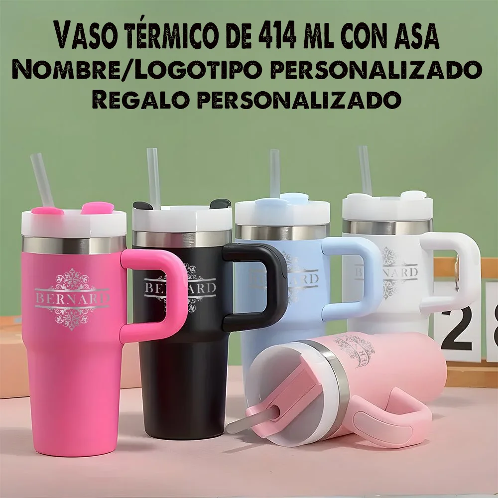 Bouteille d'eau isotherme personnalisable de 414 ml, gravable, avec poignée, tasse isotherme grande capacité, tasse à café sous vide, tasse portable en acier inoxydable 304, idéale pour les voyages et le camping.