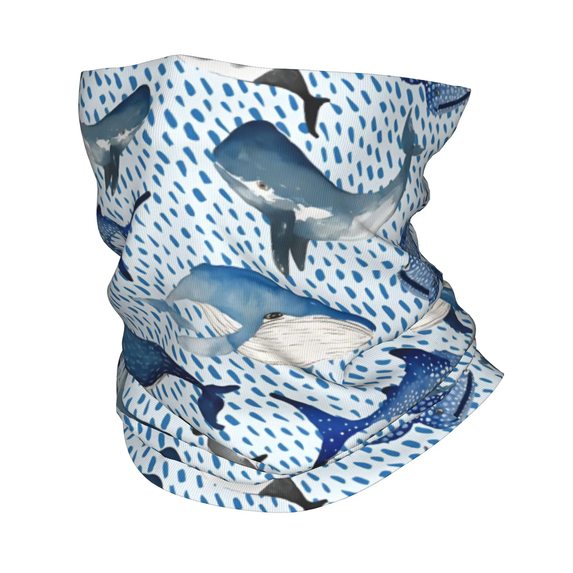 Personalizado azul acuarela tiburón invierno diadema calentador de cuello hombres esquí Camping tubo bufanda monocromática océano Animal cara Bandana polaina
