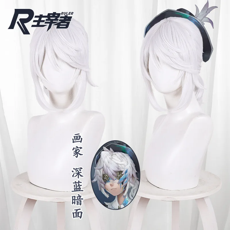 Peluca de Cosplay del personaje Edgar Valden Painter del juego Identity Ⅴ, pelo corto blanco, resistente al calor, sintético, para fiesta de Halloween
