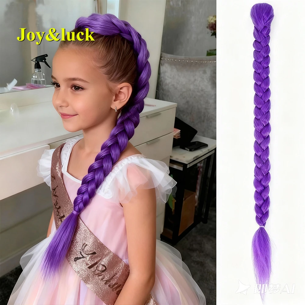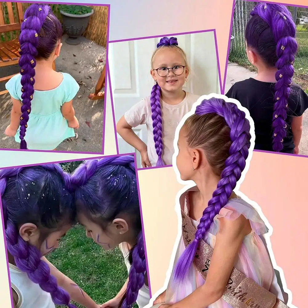 Cola de Caballo trenzada púrpura para niños, peinado Rumi de 26 pulgadas, pelo sintético con Clips, peinado de Cosplay de Navidad y Halloween para niñas