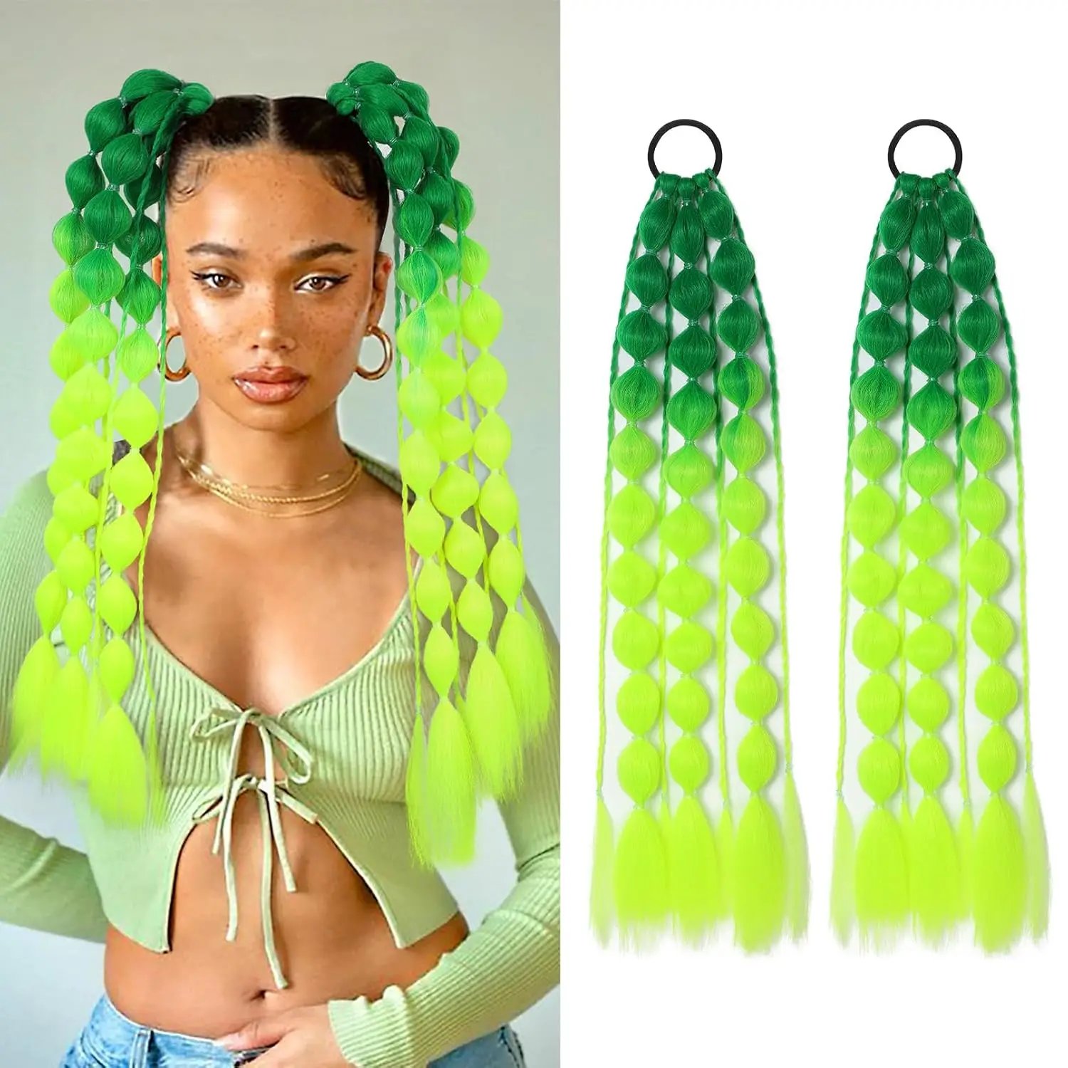 Extensiones de cola de caballo de burbujas sintéticas, 2 uds., extensiones de cabello de colores ligeros de 20 "con lazo para el cabello para mujeres y niñas, uso diario en fiestas