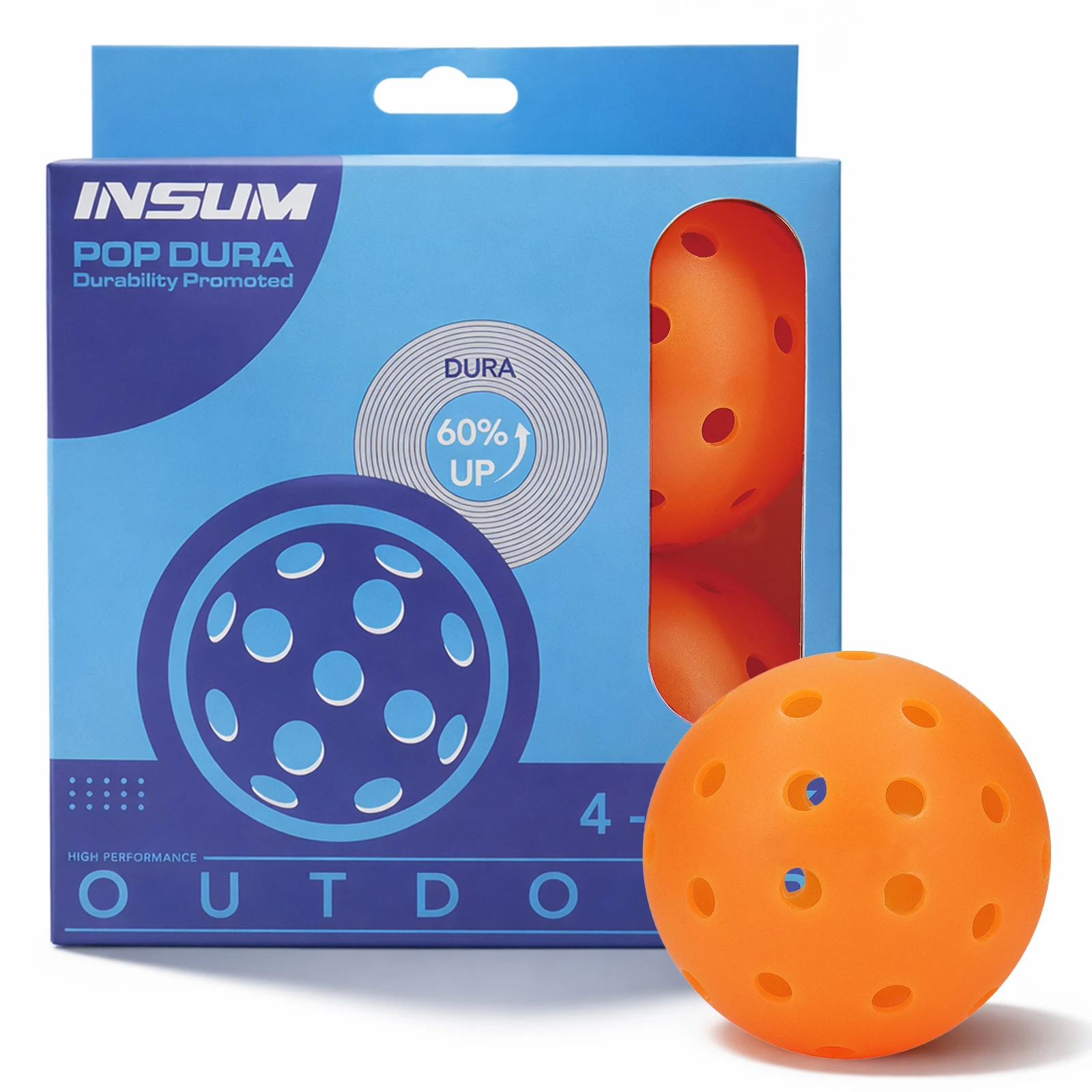 Pelotas de Pickleball INSUM para Exteriores, Paquete de 4, 40 Orificios, Alto Rebote, Duraderas, para Todas las Palas de Pickleball