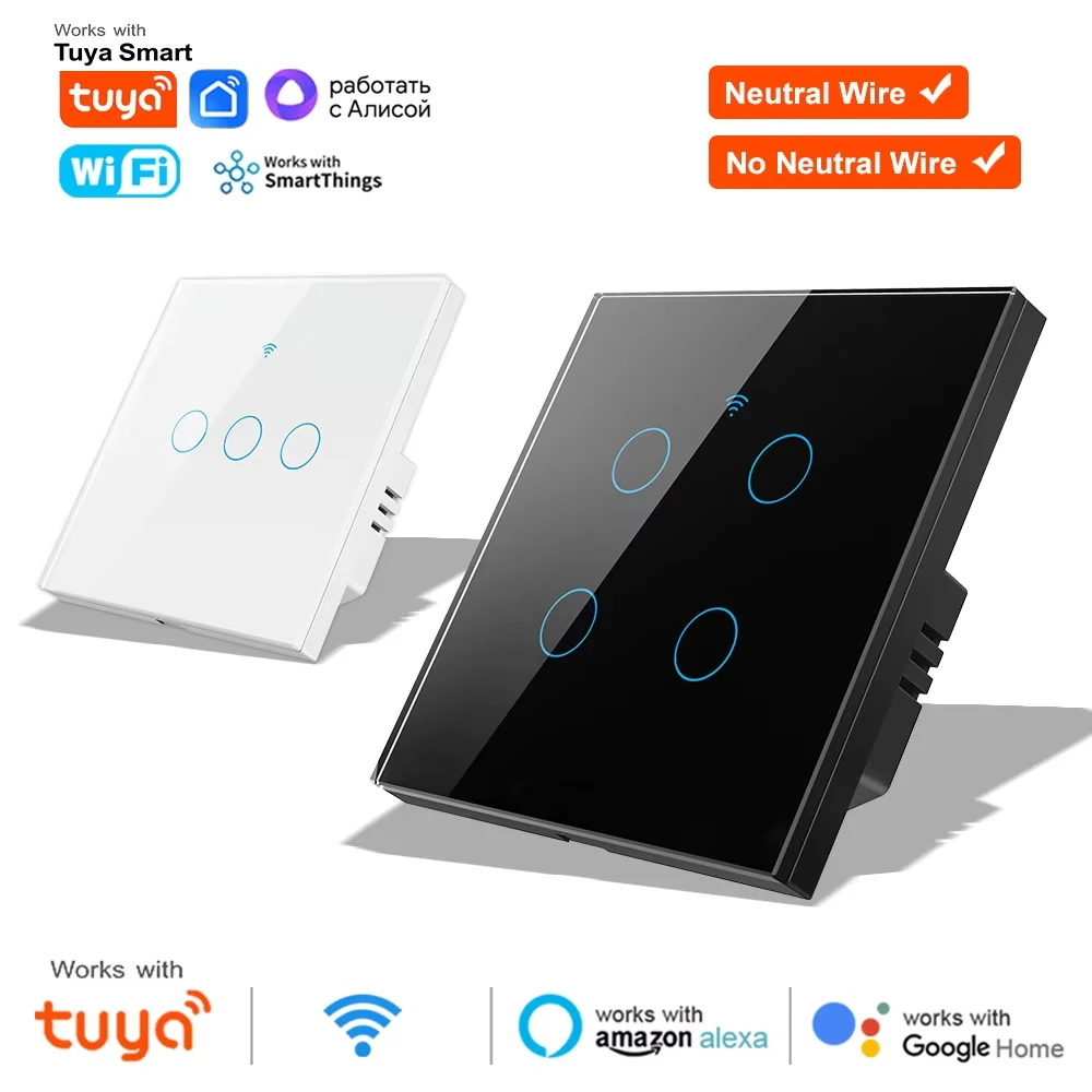 1 2 3 4 Gang WiFi RF 433mhz luz de pared táctil inalámbrica inteligente con botón de interruptor 220V sin neutro UE Tuya Alexa Google