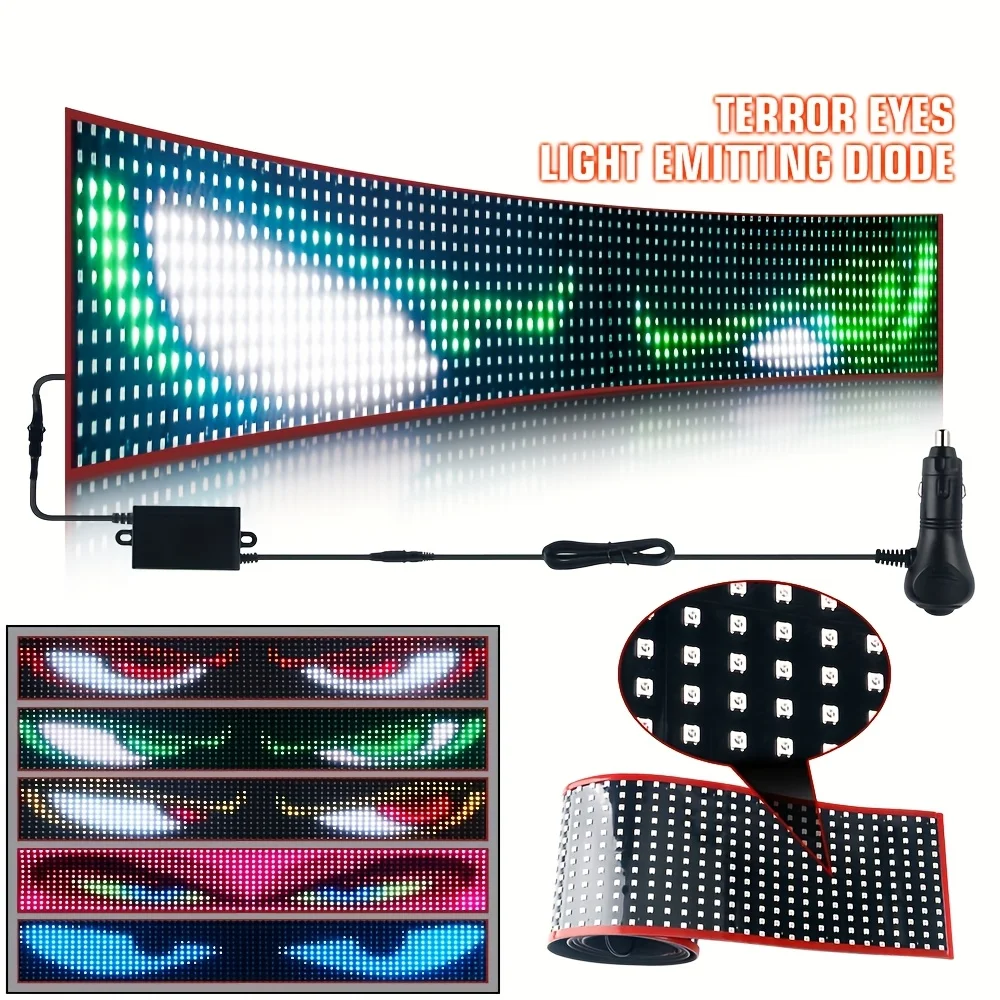 Panel de píxeles de matriz de señal LED, ojos Led brillantes défilantes para letrero de camión, letrero LED USB Flexible para coche, aplicación Bluetooth, Control DIY