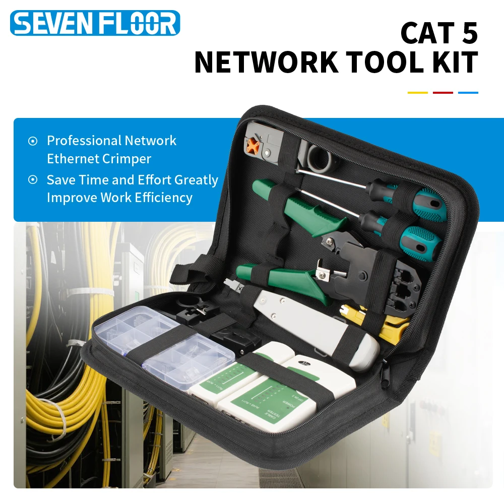 Kit de herramientas de crimpado RJ45 profesional 8P 6P 4P, probador de cables de red, herramienta de perforación, pelacables, destornilladores, 10 conectores Cat5, bolsa de herramientas