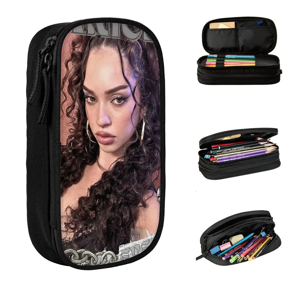 Lindo KATSEYE Daniela Kpop Y2K estuches para lápices caja de bolígrafos para estudiantes bolsa de almacenamiento grande estudiantes escuela cremallera papelería