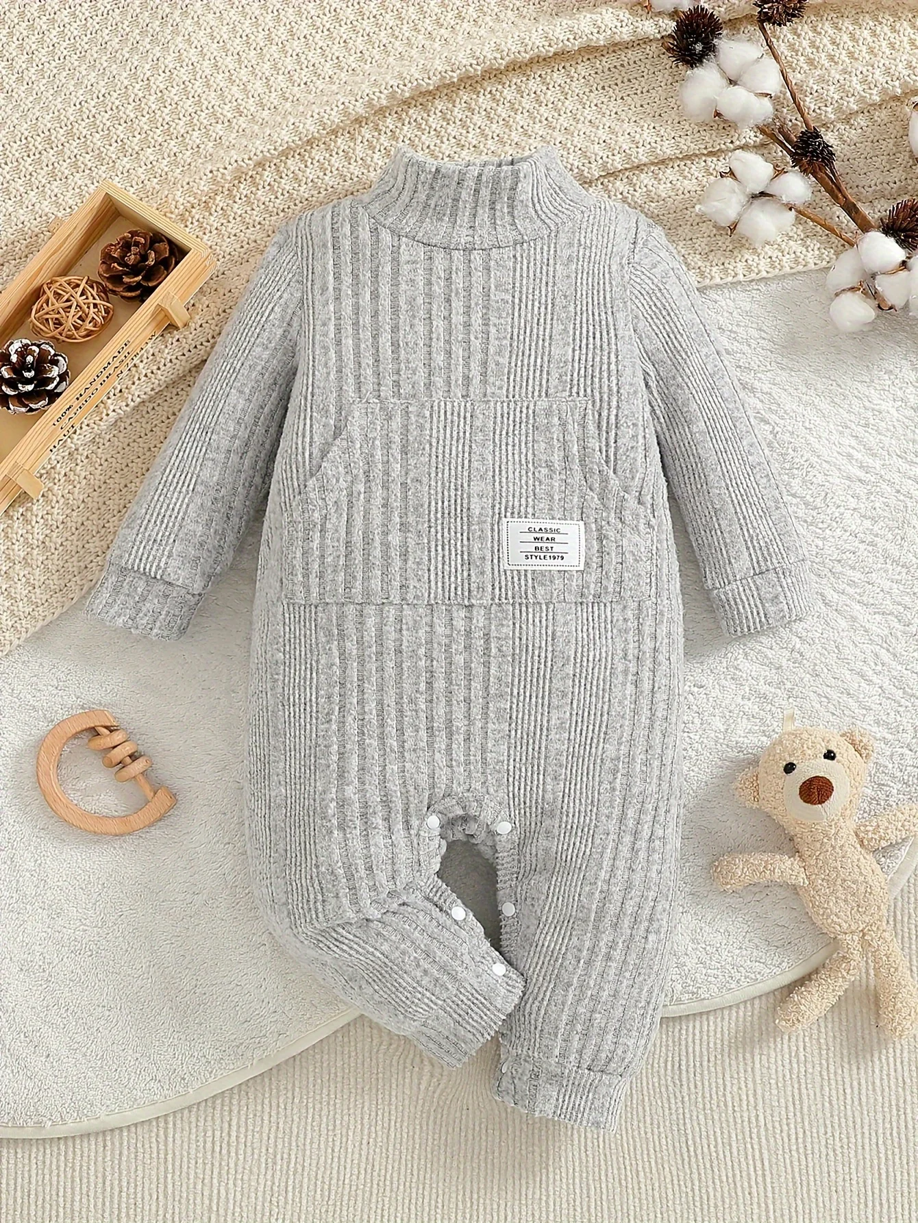 Ropa cálida acanalada con cuello alto de otoño y primavera para bebé, mameluco de bebé cómodo y práctico para el hogar y el exterior.