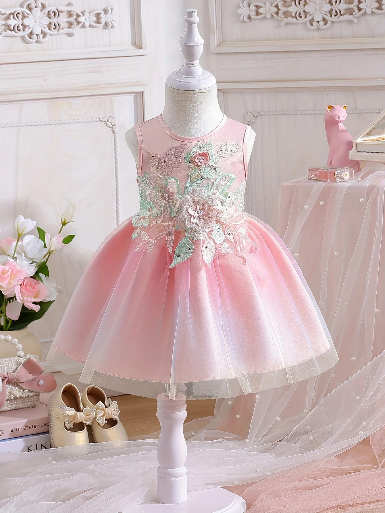 Vestido de princesa sin mangas con estampado de flores en rosa para niña en verano, traje de niña hoy, regalo del Día de San Valentín