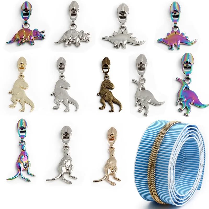 6/10/15/20 piezas serie de dinosaurios bolsa de costura tirador de cremallera de metal bolsillo de ropa extractor desmontable deslizador accesorios de artesanía DIY