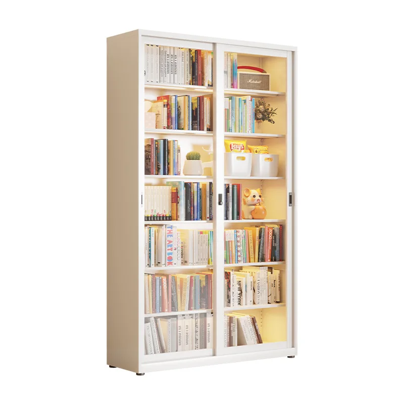 Estantería de acero para el hogar, puerta corredera, estantería de vidrio a prueba de polvo con cerradura, vitrina, almacenamiento en el suelo