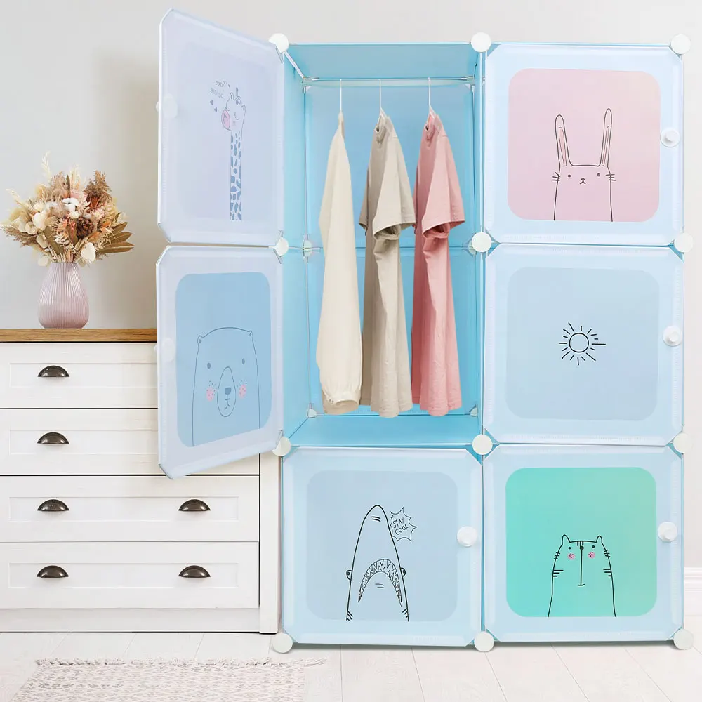 Armario infantil, estante modular, armario infantil, organizador modular, estante de almacenamiento para el hogar, 6 módulos, 74×37×110 cm