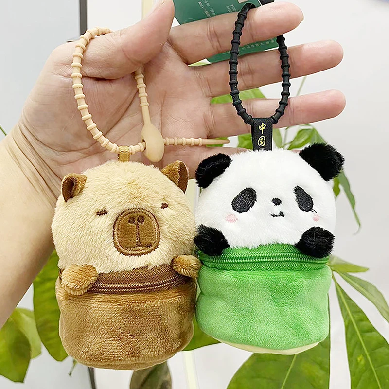 Monedero de Panda de capibara de dibujos animados, llavero, bolsa de almacenamiento con cremallera a la moda, bolso pequeño creativo y bonito, decoración colgante, regalo para niñas