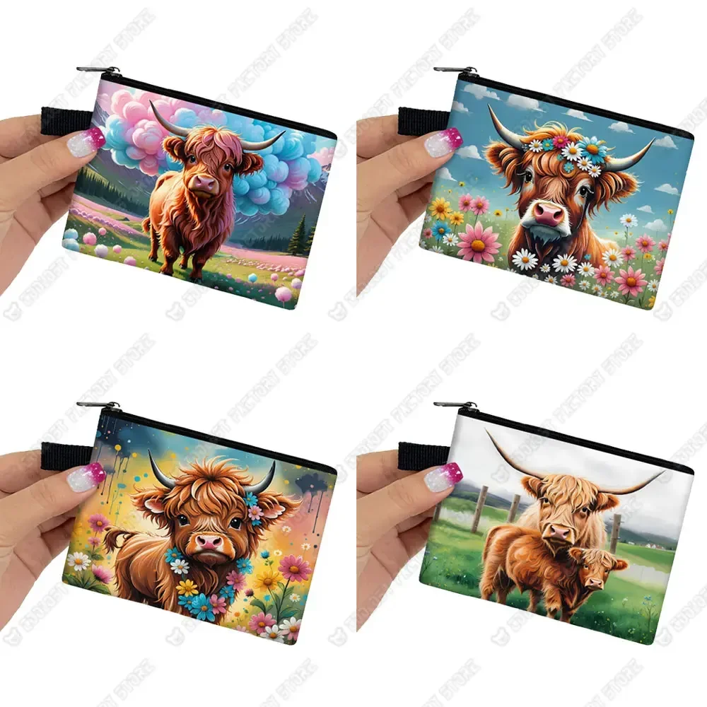 Monedero con estampado de vacas de las tierras altas escocesas, bonito vaca de las tierras altas, girasol, tarjeta de crédito, soporte para auriculares, monedero, bolsa con cremallera, regalo