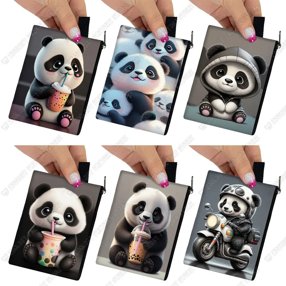 Panda con estampado de té de la leche, monedero con bonito Panda, bolsas para dinero con té de burbujas, Mini bolso con cremallera, tarjetero, llavero, bolsas de regalo
